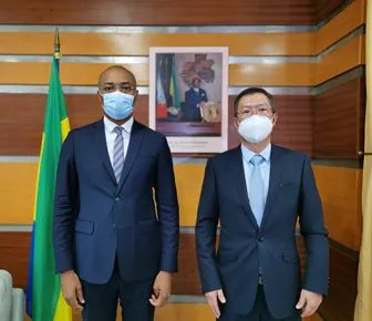 2月22日,驻加蓬大使胡长春会见加卫生部长奥比昂。使馆经商参赞刘杰会见时在座。